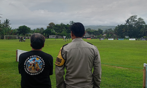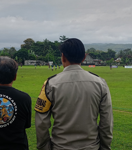Bhabinkamtibmas Kalurahan Sriharjo Aipda Wahyono SH melaksanakan pengamanan pertandingan sepak ...