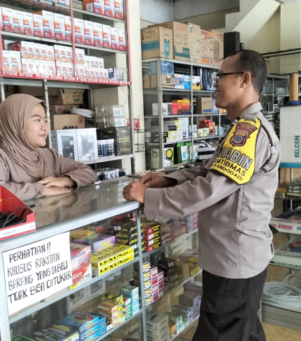 Bhabinkamtibmas Kalurahan Sabdodadi, Aiptu Moh. Riyadi, melaksanakan kegiatan patroli dan ...
