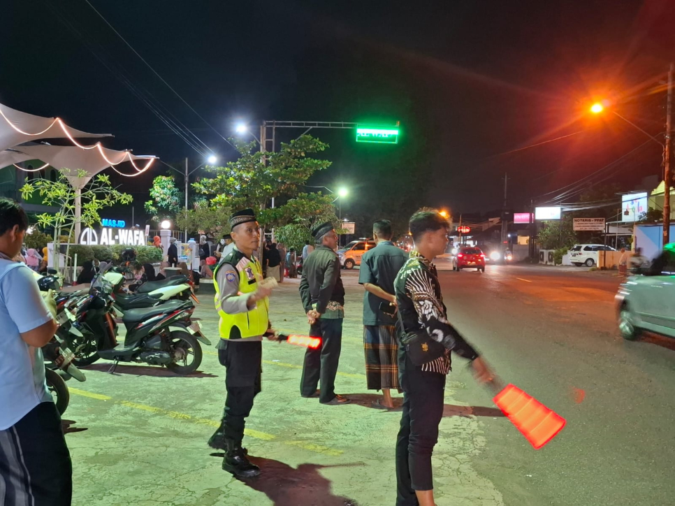 Selain melakukan pengamanan, Aiptu Wawan juga menyempatkan diri untuk berinteraksi dengan warga, menyampaikan pesan-pesan kamtibmas, serta mengimbau jamaah untuk selalu menjaga ketertiban selama kegiatan berlangsung. Ia juga mengingatkan masyarakat agar tetap waspada terhadap barang bawaan mereka dan mengamankan kendaraan yang diparkir guna menghindari potensi tindak kriminal.