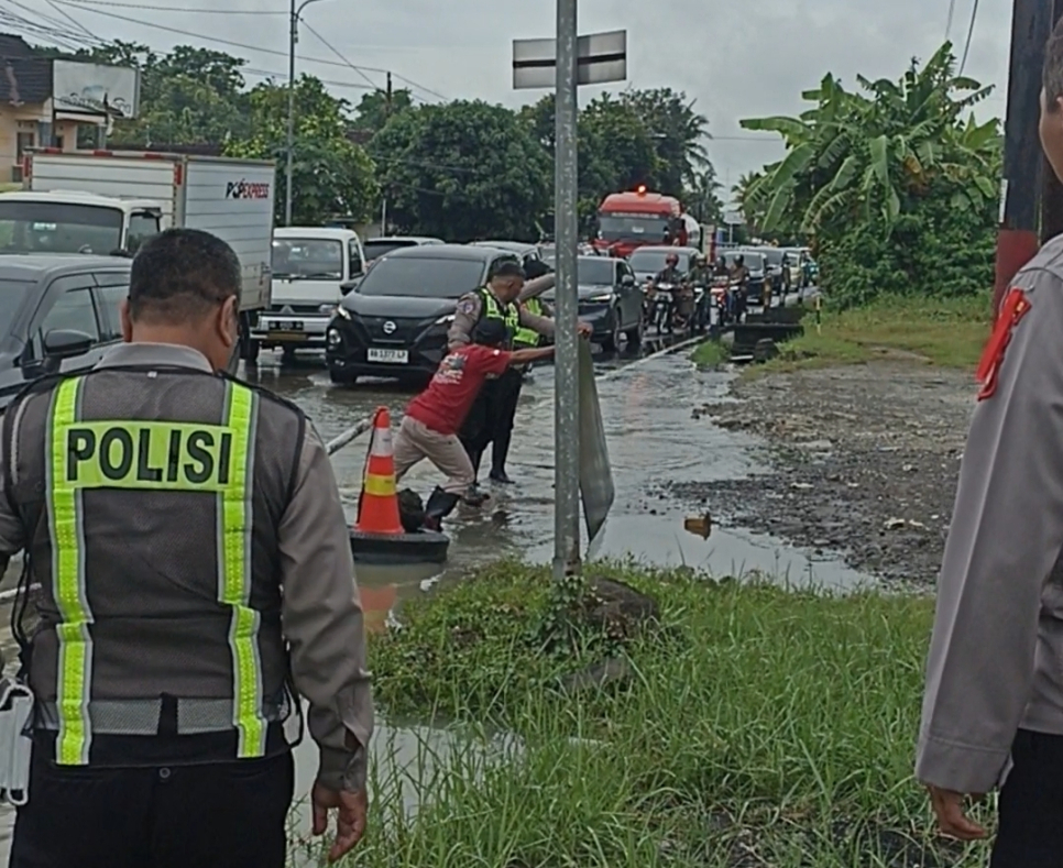 Selain melakukan pembersihan, anggota Pospam juga memberikan imbauan kepada para pengguna jalan agar tetap berhati-hati, waspada, serta selalu mengutamakan keselamatan selama berkendara, khususnya di tengah cuaca hujan.