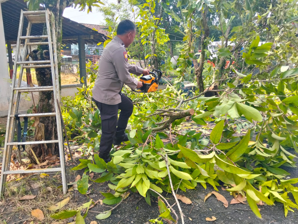 Bhabinkamtibmas Bangunjiwo Bersama Instansi Terkait Laksanakan Mitigasi Pohon di Sekarpethak