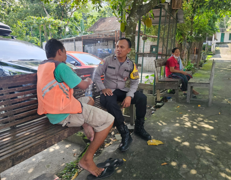 Bhabinkamtibmas Bangunjiwo Sambangi Petugas Parkir, Imbau Waspada Tindak Pencurian
