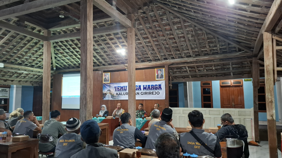 Kegiatan Temu Jaga Warga dihadiri oleh berbagai tokoh dan unsur penting di Kalurahan Girirejo, termasuk Lurah Girirejo, Babinsa, Jogoboyo, staf kalurahan, serta seluruh anggota dan pengurus kelompok Jaga Warga.