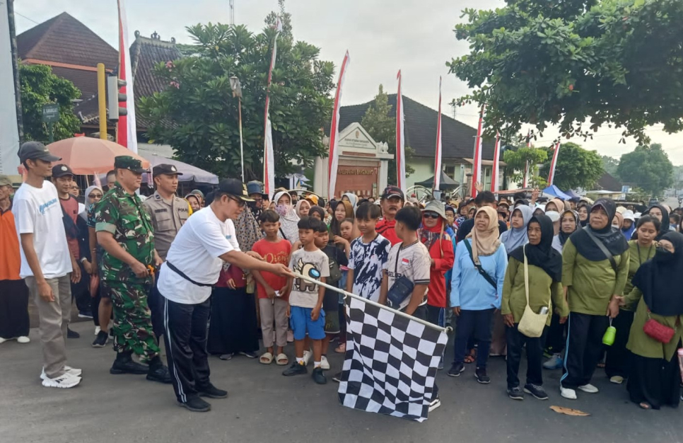 Bhabinkamtibmas Kalurahan Bangunjiwo Amankan Jalan Sehat HUT Kalurahan ke-79