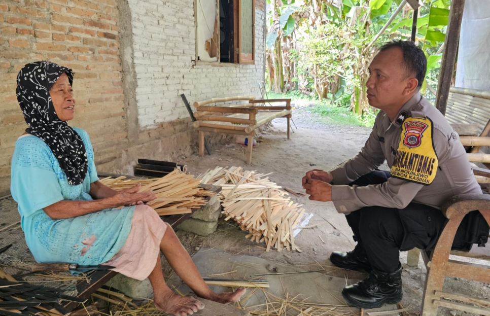 Dalam kegiatan tersebut, Aipda Siswantoro menyambangi Ibu Tumi, seorang pengrajin kipas yang gigih dan inspiratif. Sambil bersilaturahmi, Aipda Siswantoro memberikan imbauan kamtibmas yang bermanfaat bagi Ibu Tumi dan warga sekitar.