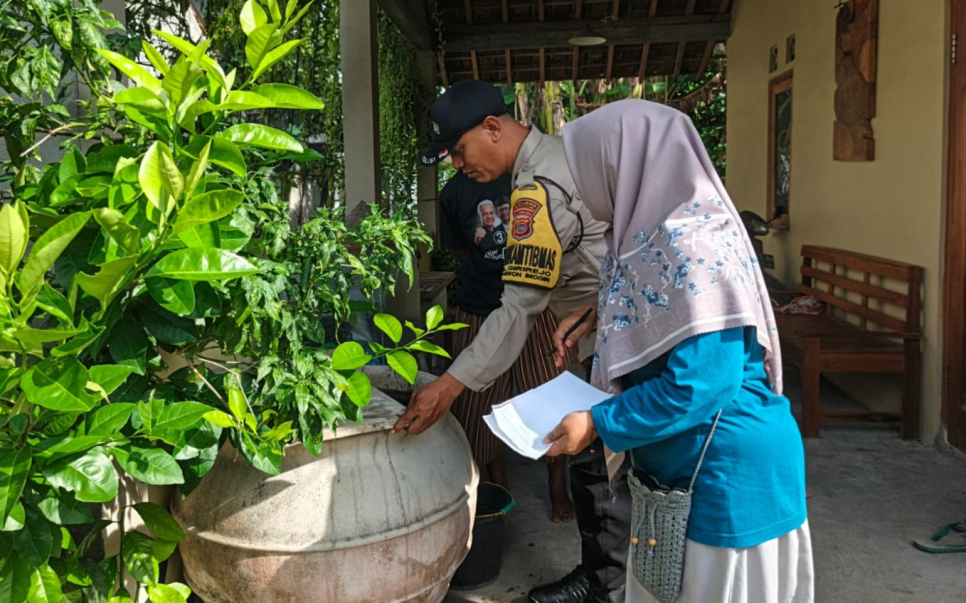 Dalam kegiatan tersebut, Aiptu Toto turut aktif mengecek jentik-jentik nyamuk di rumah-rumah warga. Selain itu, ia juga memberikan imbauan kepada warga terkait pentingnya menjaga kebersihan lingkungan rumah.