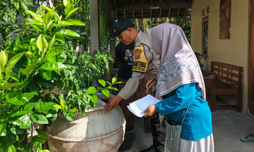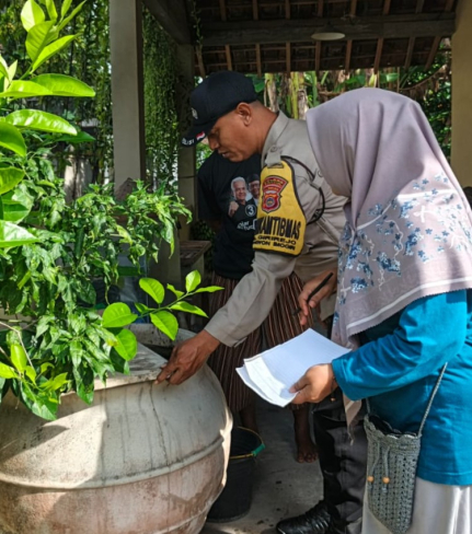 Bhabinkamtibmas Kalurahan Karangtalun, Brigadir Angga Aditya Pratama, melaksanakan kegiatan Gertak PSN (Gerakan Serentak Pemberantasan Sarang Nyamuk) di Padukuhan Setran, Karangtalun, Imogiri, Bantul, Jumat (19/12/2025).Kegiatan ini dilaksanakan oleh petugas lintas sektoral Kapanewon Imogiri yang dipimpin oleh Lurah Karangtalun.
