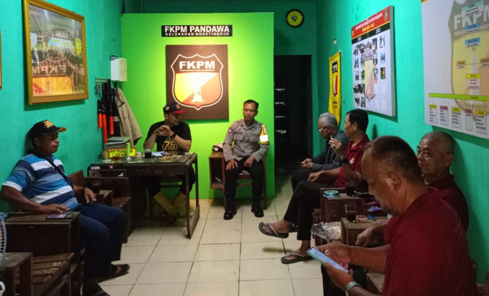 Bhabinkamtibmas Kalurahan Ngestiharjo Aiptu Sumardi menyambangi FKPM Soboman di Kalurahan Ngestiharjo, Kasihan, Bantul, Jumat (13/2/2026).Aiptu Sumardi menyampaikan bahwa sambang ini bertujuan untuk mempererat komunikasi antara Polri dan elemen masyarakat, khususnya Forum Kemitraan Polisi dan Masyarakat (FKPM).