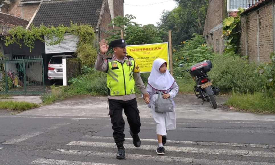 Dalam kegiatan tersebut Aipda Mulyadi sigap mengatur lalu lintas dan menyeberangkan anak-anak sekolah. Selain itu, ia juga memberikan imbauan kepada pengguna jalan agar selalu berhati-hati serta mematuhi peraturan lalu lintas demi keselamatan bersama.