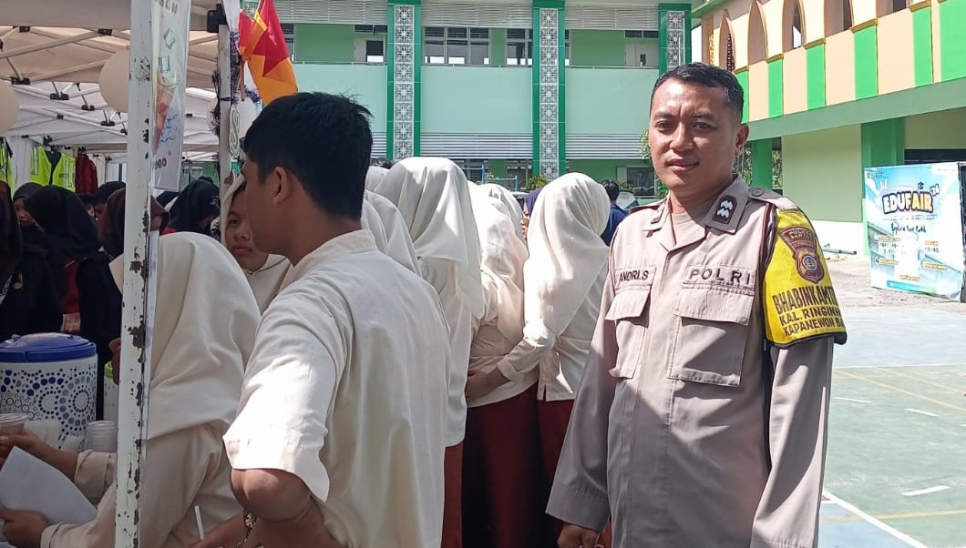 Bhabinkamtibmas Kalurahan Ringinharjo, Aiptu Andri, melaksanakan kegiatan pengamanan MAN 1 Bantul Edufair 2026 yang digelar di MAN 1 Bantul, Kamis (5/2/2026).Kegiatan tersebut dihadiri oleh Kepala Sekolah MAN 1 Bantul, guru, perwakilan perguruan tinggi negeri dan swasta se-DIY, serta siswa-siswi MAN 1 Bantul.
