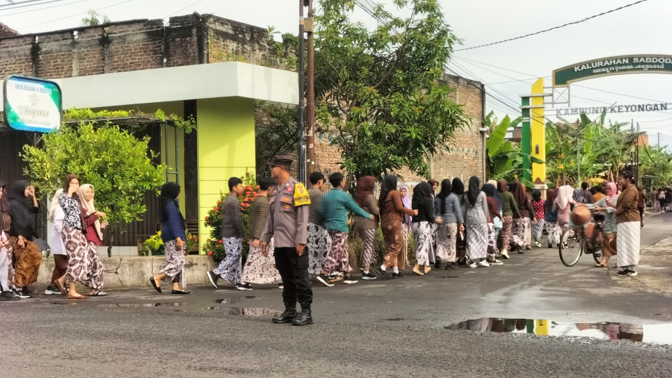 Dalam rangka memeriahkan peringatan Hari Ulang Tahun (HUT) ke-271 Daerah Istimewa Yogyakarta, Bhabinkamtibmas Kalurahan Sabdodadi Polsek Bantul, AIPTU Moh Riyadi, melaksanakan pengamanan (PAM) kegiatan Kirab Budaya yang diselenggarakan oleh SMKN 1 Bantul, Jumat (13/02/2026).Kegiatan pengamanan tersebut dilaksanakan mulai pukul 07.00 WIB hingga selesai, bertempat di SMKN 1 Bantul. Kirab budaya diikuti oleh siswa-siswi kelas X dan XI, serta didampingi oleh Kepala Sekolah, guru, dan karyawan SMKN 1 Bantul.