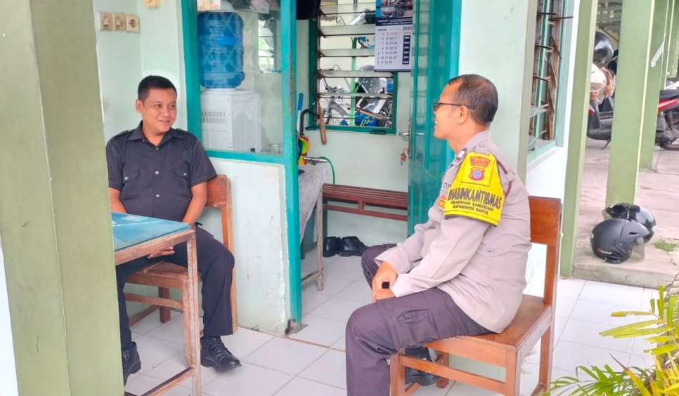 Dalam kesempatan tersebut Bhabinkamtibmas Aiptu Moh Riyadi memberikan imbauan kepada Satpam sekolah agar meningkatkan kewaspadaan terhadap lingkungan sekitar.