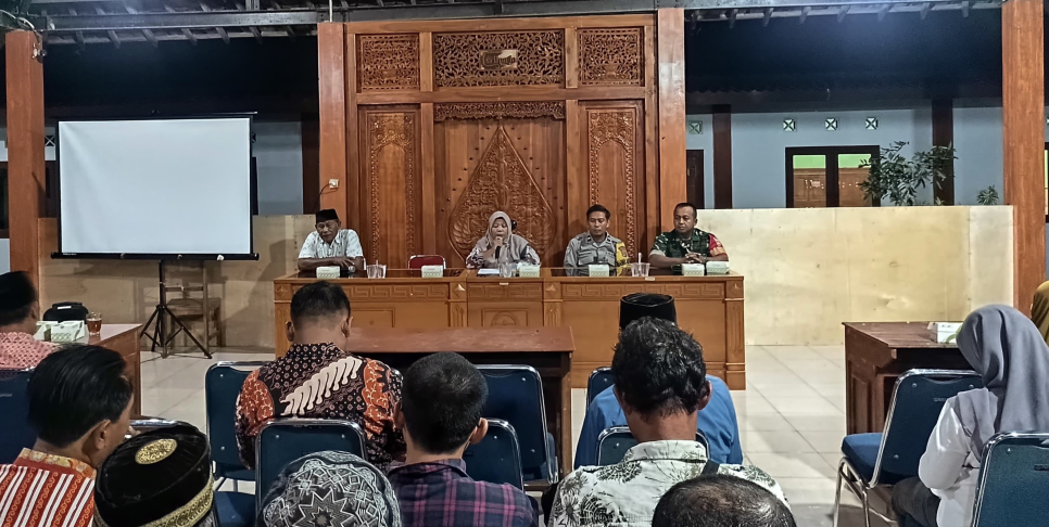 Bhabinkamtibmas Kalurahan Sriharjo, Aipda Wahyono SH, menghadiri rapat koordinasi bersama Ketua RT di Pendopo Kalurahan Sriharjo, Imogiri, Bantul, Selasa (16/12/2025).Rapat ini dipimpin oleh Lurah Sriharjo Titik Istiyawatun Khasanah SIP, dihadiri oleh Pamong, Ketua RT, Babinsa, dan Bhabinkamtibmas.