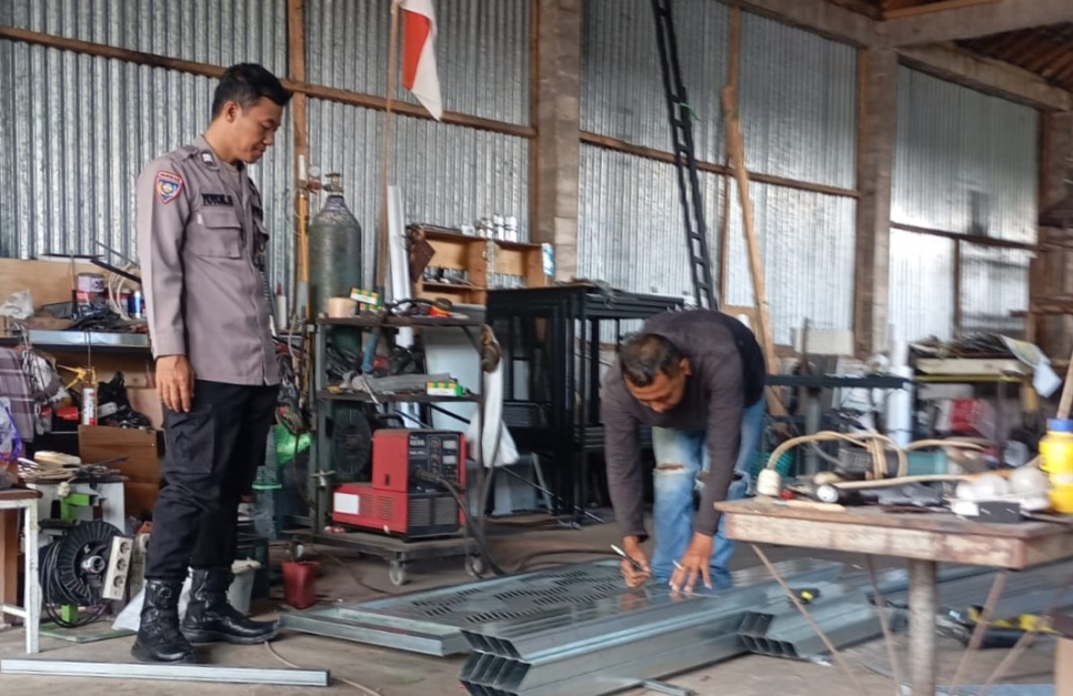Bhabinkamtibmas Kalurahan Timbulharjo Sambangi Bengkel Las, Sampaikan Pesan Kamtibmas