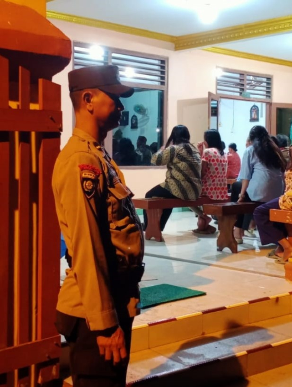 Bhabinkamtibmas Kalurahan Tirtohargo Amankan Kegiatan Ibadah di Kapel Santo Yusuf Baros, Ciptakan Rasa Aman Jelang Natal