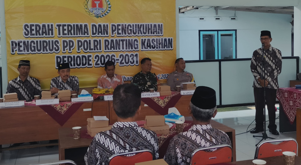 Bhabinkamtibmas Kalurahan Tirtonirmolo, Aiptu Agus Haryanto, menghadiri undangan kegiatan serah terima dan pengukuhan Pengurus PP Polri Ranting Kasihan periode 2026-2031. Acara ini diselenggarakan di Pendopo Kapanewon Kasihan, Sabtu (31/1/2026).Kegiatan ini dihadiri oleh Ketua PP Polri Bantul, Ketua PP Polri Kasihan, Panewu Kapanewon Kasihan, Babinsa, serta Bhabinkamtibmas Kalurahan Tirtonirmolo.