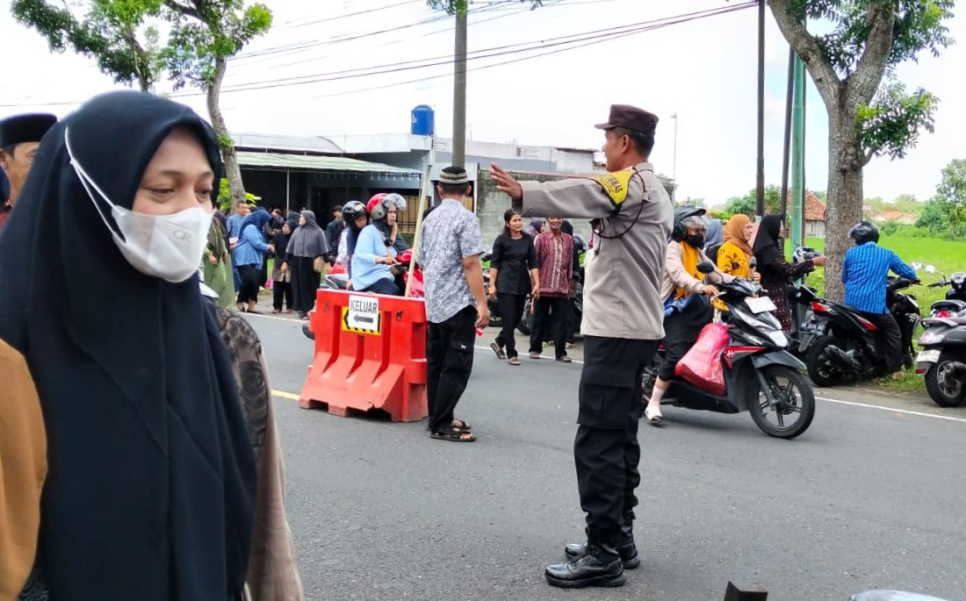 Sebagai wujud pelayanan kepada masyarakat, Aiptu Amat Riyadi melakukan pengaturan lalu lintas mengingat lokasi rumah duka berdekatan dengan jalan raya.