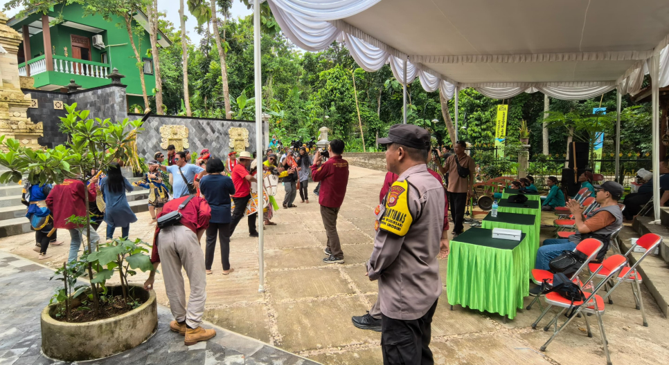Bhabinkamtibmas Kalurahan Wukirsari Bripka Chrismawan Adi Nugroho melaksanakan pengamanan pentas seni Reog di Bale Kajenar, Padukuhan Sindet, Wukirsari, Imogiri, Bantul, Senin (5/1/2026).Kehadiran Bhabinkamtibmas untuk memberikan rasa aman dan nyaman selama kegiatan berlangsung. Selain itu, sekaligus sebagai bentuk dukungan Polri terhadap pelestarian seni dan budaya tradisional.
