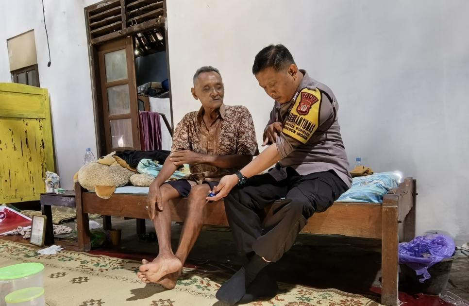 Kunjungan Bhabinkamtibmas Bripka Chrismawan Adi Nugroho ini bertujuan untuk menjenguk Bapak Purmiran yang baru saja tiba di rumah setelah menjalani perawatan inap di rumah sakit. Kehadiran Bripka Chrismawan menjadi penyemangat bagi Bapak Purmiran dan keluarga.