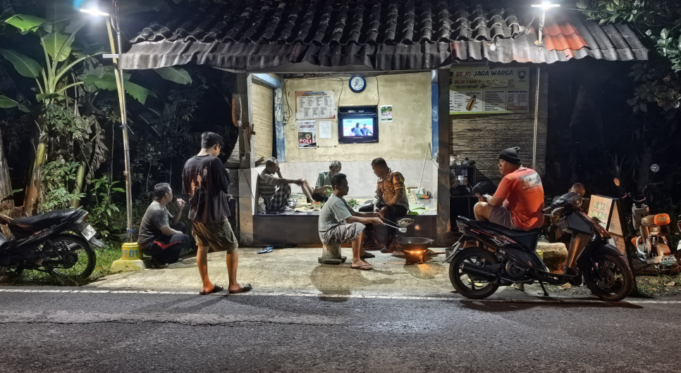 Bhabinkamtibmas Bripka Chrismawan Adi Nugroho hadir langsung menyambangi warga yang sedang melaksanakan ronda malam. Dalam kesempatan tersebut, Bripka Chrismawan memberikan motivasi, semangat, serta dukungan kepada petugas pos kamling agar tetap aktif menjaga keamanan dan ketertiban lingkungan secara swadaya.
