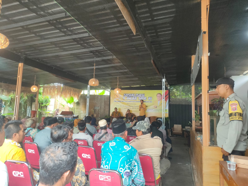 Bhabinkamtibmas Kalurahan Karangtengah, Kapanewon Imogiri, Kabupaten Bantul, Aiptu Wisnu Susanto menghadiri kegiatan Sosialisasi 4 Pilar Kebangsaan yang diselenggarakan di GPC 2 Numpukan, Karangtengah, Kamis (8/1/2026).Kegiatan yang dimulai pukul 13.00 WIB hingga selesai tersebut diikuti oleh berbagai elemen masyarakat dari tiga kapanewon, yakni Imogiri, Pleret, dan Dlingo. Hadir dalam kegiatan tersebut Drs. H. M. Gandung Pardiman, MM, Syarief Guska Laksana, S.H selaku Anggota DPRD Provinsi DIY, serta Santoso Suparman sebagai narasumber dari Bambanglipuro, Bantul.