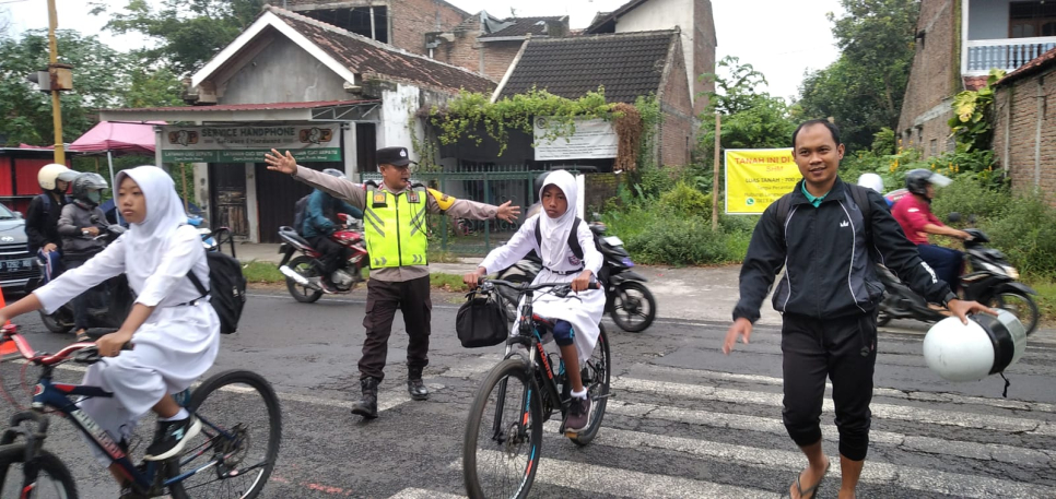 Bhabinkamtibmas Panggungharjo Laksanakan Pengaturan Lalu Lintas Pagi di Jalan Paris SDN Sewon 1