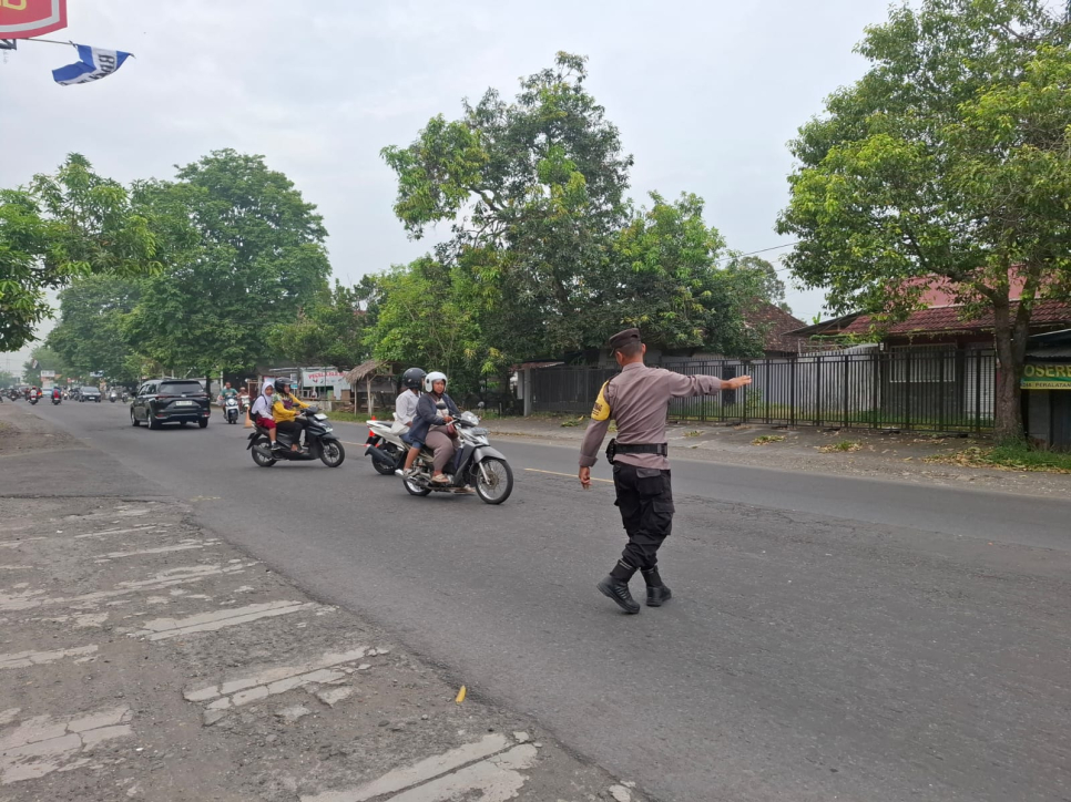 Dalam rangka memberikan pelayanan prima kepada masyarakat, Bhabinkamtibmas Kalurahan Pendowoharjo Polsek Sewon, Aiptu Wawan Giarto, S.Psi., melaksanakan kegiatan pengaturan arus lalu lintas pagi hari di depan SDN Monggang, Senin (26/01/2026).Kegiatan pengaturan lalu lintas ini bertujuan untuk membantu kelancaran arus kendaraan serta menyeberangkan para pengendara, guru dan karyawan sekolah, para siswa, maupun orang tua/wali yang mengantar anak-anaknya masuk ke sekolah. Mengingat pada jam masuk sekolah volume kendaraan cukup meningkat, kehadiran petugas di lapangan sangat dibutuhkan guna mencegah terjadinya kemacetan dan kecelakaan lalu lintas.