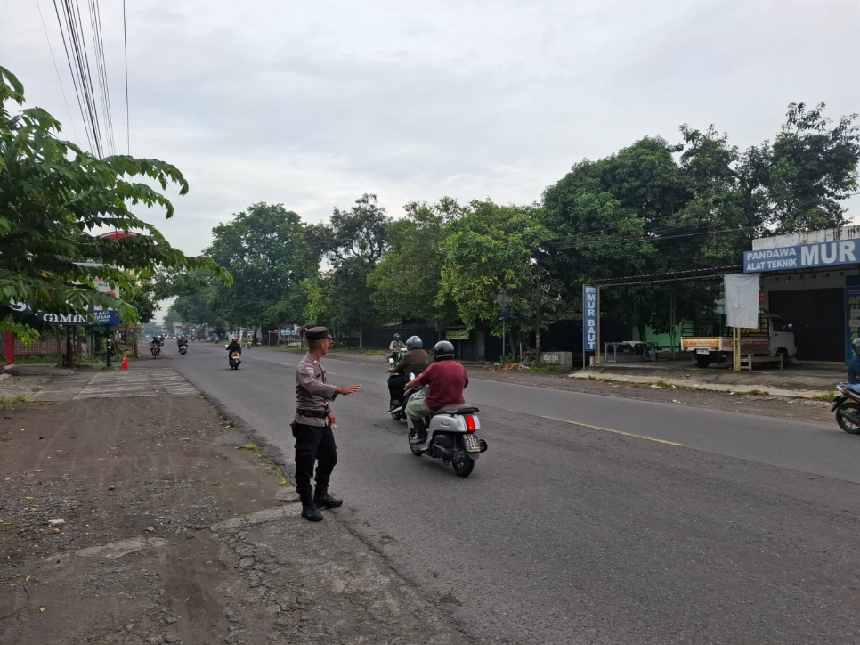 Bhabinkamtibmas Kalurahan Pendowoharjo Polsek Sewon, Aiptu Wawan Giarto, S.Psi, melaksanakan kegiatan pengaturan arus lalu lintas pagi di Simpang Tiga (Sp. 3) SDN Monggang, Kalurahan Pendowoharjo, Kapanewon Sewon, Kabupaten Bantul, pada Senin (05/01/2026).Kegiatan ini dilaksanakan sebagai bentuk pelayanan prima kepolisian kepada masyarakat, khususnya dalam memberikan rasa aman dan kelancaran berlalu lintas pada jam masuk sekolah. Aiptu Wawan Giarto, S.Psi, secara aktif membantu menyeberangkan para pengendara, guru dan karyawan sekolah, serta para siswa beserta orang tua atau pengantar yang hendak memasuki area sekolah.