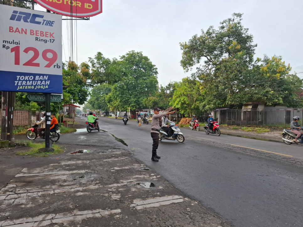 Guna memberikan rasa aman dan kelancaran arus lalu lintas pada jam masuk sekolah, Bhabinkamtibmas Kalurahan Pendowoharjo Polsek Sewon, Aiptu Wawan Giarto, S.Psi, melaksanakan pengaturan lalu lintas pagi di depan SDN Monggang, Rabu (7/1/2026).Kegiatan pengaturan lalu lintas tersebut dilaksanakan mulai pukul 06.30 WIB hingga selesai, bertempat di simpang tiga SDN Monggang Pendowoharjo. Dalam kegiatan ini, Aiptu Wawan Giarto membantu menyeberangkan para pengendara, guru dan karyawan sekolah, serta para siswa beserta orang tua atau pengantarnya yang hendak memasuki lingkungan sekolah.