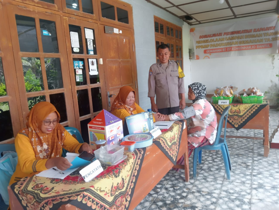 Bhabinkamtibmas Kalurahan Ringinharjo, Aipda Andri S., melaksanakan kegiatan monitoring dan pendampingan Posyandu Balita dan Lansia di Padukuhan Sogatran RT 07 Gemahan, Ringinharjo, Bantul, pada Senin (8/12/2025) pagi.Kegiatan ini merupakan bentuk dukungan Polri terhadap program kesehatan masyarakat di tingkat padukuhan serta upaya menjaga situasi kamtibmas yang kondusif selama pelayanan berlangsung.