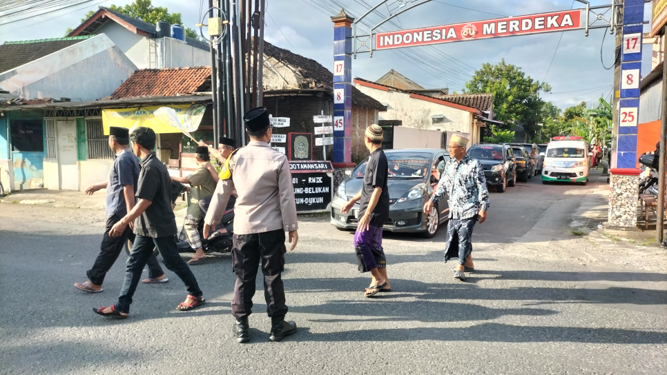 Selain mengikuti rangkaian takziah, Aiptu Moh Riyadi juga melaksanakan Turlalin guna membantu penyeberangan para tamu serta menjaga kelancaran arus kendaraan di sekitar lokasi kegiatan.