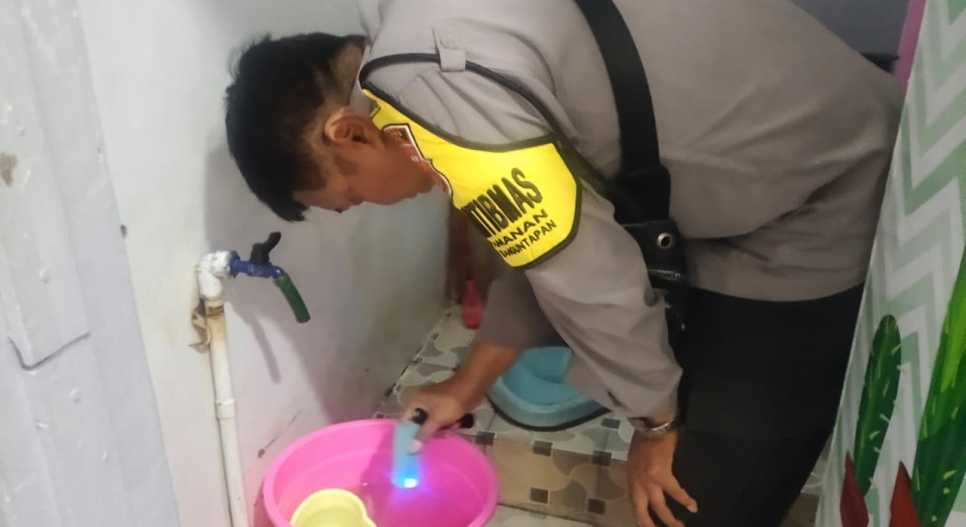 Bhabinkamtibmas Kalurahan Tamanan, Aiptu Setiyo Prabowo, melaksanakan pemberantasan Sarang Nyamuk (PSN) di RT 01 dan RT 02 Pedukuhan Kragilan, Kalurahan Tamanan Banguntapan. Jumat 18/10/2024. Kegiatan ini bertujuan untuk mencegah penyebaran penyakit demam berdarah melalui eliminasi jentik nyamuk di lingkungan warga.