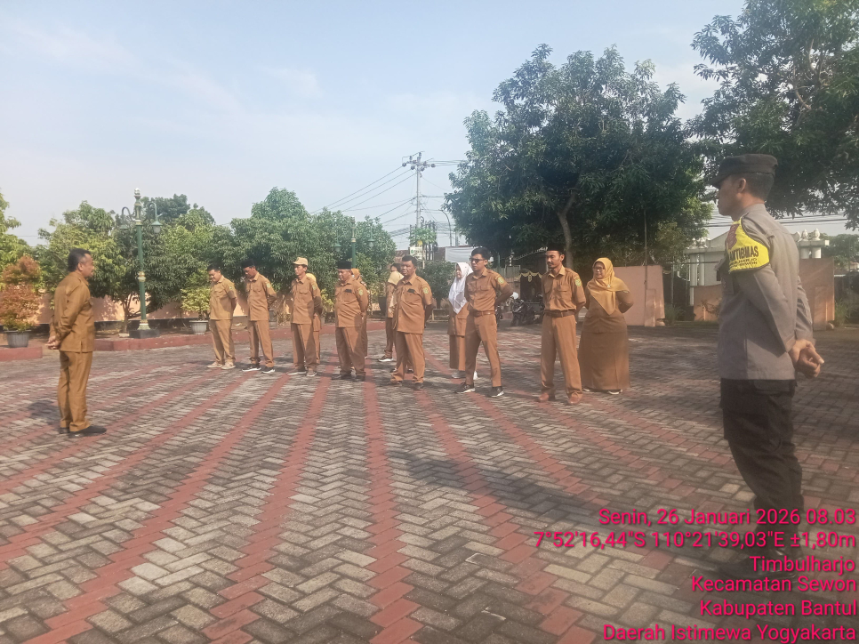 Bhabinkamtibmas Kalurahan Timbulharjo Polsek Sewon, Aiptu Yoyok Hendratmoko, mengikuti kegiatan apel gabungan bersama pamong Kalurahan Timbulharjo, Senin (26/01/2026).Apel gabungan tersebut dilaksanakan sebagai sarana koordinasi dan komunikasi antara pamong kelurahan dengan unsur keamanan, khususnya Bhabinkamtibmas, dalam rangka merencanakan program-program kerja yang akan dilaksanakan ke depan. Melalui kegiatan ini diharapkan setiap program dapat berjalan selaras dan memberikan manfaat optimal bagi masyarakat.
