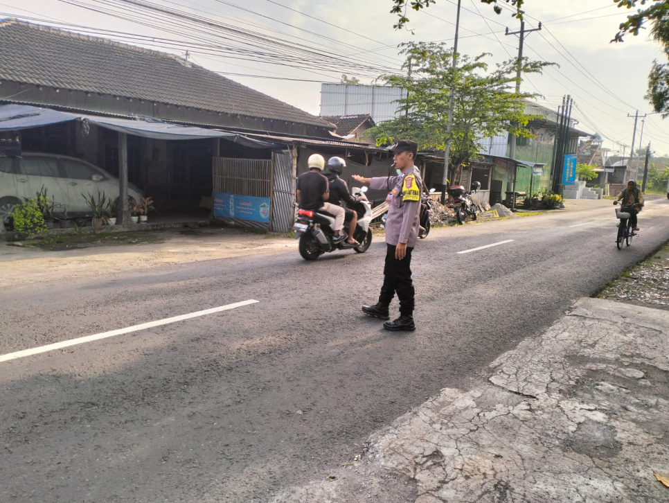 Bhabinkamtibmas Timbulharjo Laksanakan Pengaturan Lalu Lintas Pagi di Depan TK N Tembi