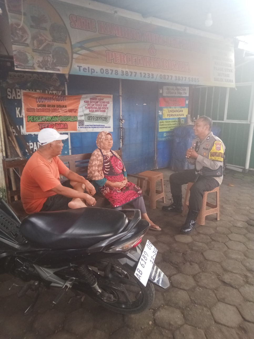 Bhabinkamtibmas menyampaikan pesan-pesan kamtibmas dan mengimbau agar para pedagang selalu waspada terhadap potensi gangguan keamanan di lingkungan sekitar. Selain itu, ia juga memberikan motivasi kepada para pedagang agar tetap bersikap ramah kepada pembeli, tidak mudah putus asa apabila dagangan sedang sepi, serta terus semangat dalam mencari rezeki yang halal.