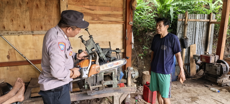 Dalam kegiatan tersebut, Bhabinkamtibmas bertemu langsung dengan para awak pengolah kayu setempat. Pada kesempatan itu, Bripka Chrismawan menyampaikan pesan-pesan kamtibmas, khususnya imbauan agar selalu waspada terhadap potensi tindak kejahatan serta gangguan keamanan di lingkungan tempat usaha.