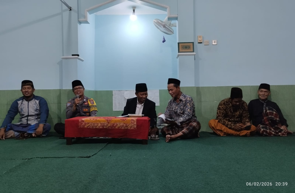 Bhabinkamtibmas Kalurahan Sabdodadi Polsek Bantul, AIPTU Moh Riyadi, menghadiri kegiatan keagamaan Mujahadah dan Pengajian Khoirusanah di Mushola Taufiqulloh, Jogroho RT 03 DK Keyongan, Sabdodadi, Bantul, Jumat (06/02/2026) malam.Kegiatan yang dimulai pukul 20.00 WIB ini menghadirkan KH. Badrussalam sebagai pengisi tausiyah. Acara tersebut juga dihadiri oleh Lurah Sabdodadi, Babinsa, Dukuh DK Keyongan, serta puluhan jamaah setempat yang memadati area mushola.
