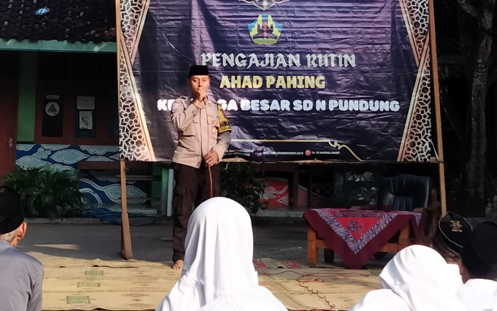 Hadiri Pengajian Rutin di SD Negeri Pundung, Bhabinkamtibmas Kalurahan Girirejo Berikan pembinaan kepada Siswa