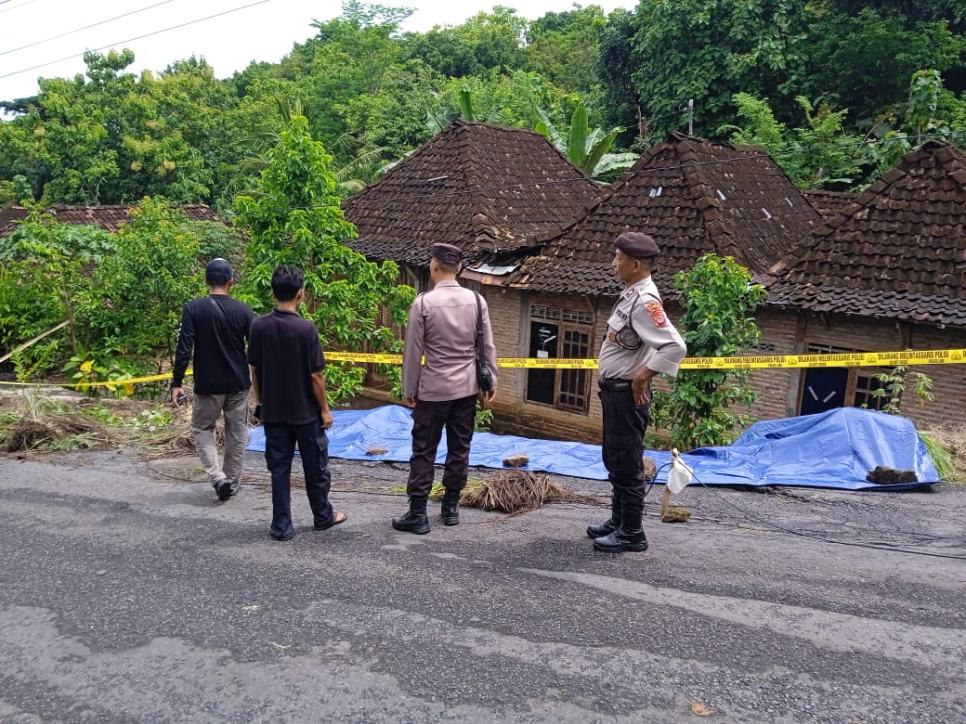 "Saksi mendengar suara gemuruh dan melihat jalan di depan rumah ambles, yang kemudian materialnya mengenai bagian teras rumah milik Bapak Giyono," jelas Aiptu Fauzan di lokasi kejadian.