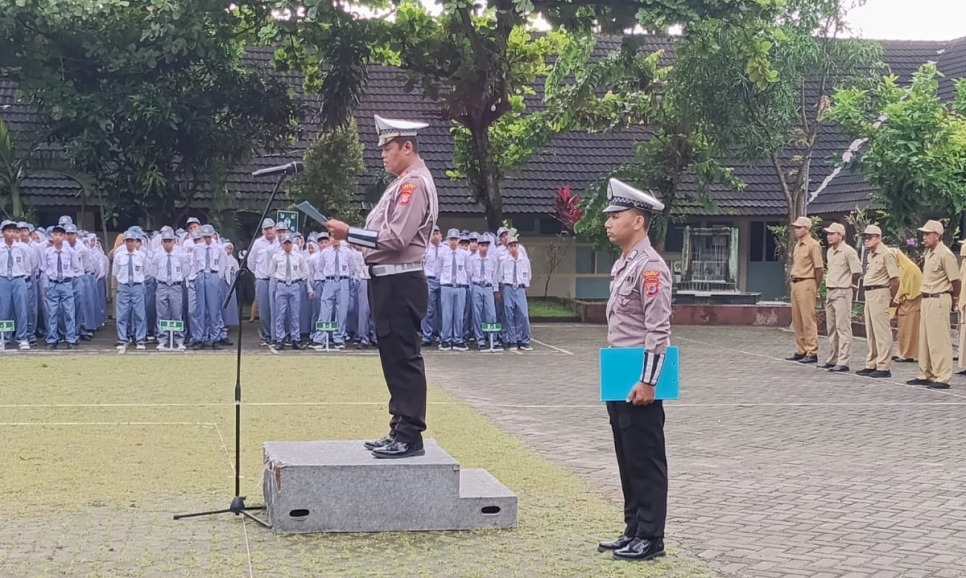 Kanit Lalu Lintas Polsek Imogiri, AKP Sudarto, menjadi pembina upacara bendera di SMA Negeri 1 Imogiri, Bantul, Senin (9/2/2026), pukul 07.00 WIB. Kegiatan ini merupakan bagian dari upaya pembinaan dan edukasi Polri kepada generasi muda.Upacara bendera yang berlangsung di halaman sekolah tersebut diikuti oleh Kepala Sekolah, dewan guru, serta seluruh siswa SMA Negeri 1 Imogiri.