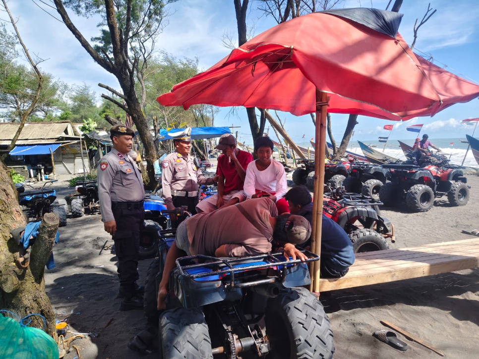Di sela-sela pemantauan, AKP Subardiyana beserta anggota menyempatkan diri berdialog dengan para pengunjung, pengelola wisata, hingga pedagang setempat. Petugas memberikan imbauan agar masyarakat tetap waspada terhadap tindak kriminalitas dan selalu memperhatikan keselamatan diri, terutama saat berada di area pantai.