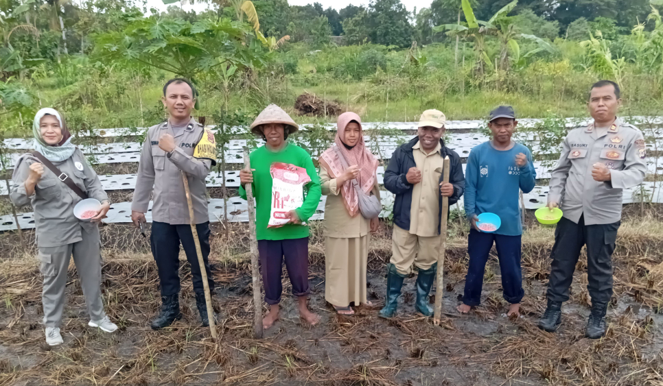 "Sebagian lahan belum bisa ditanami karena kondisi tanah yang terlalu becek, namun kami tetap lanjutkan di area yang memungkinkan untuk penanaman," kata Kanit Binmas.