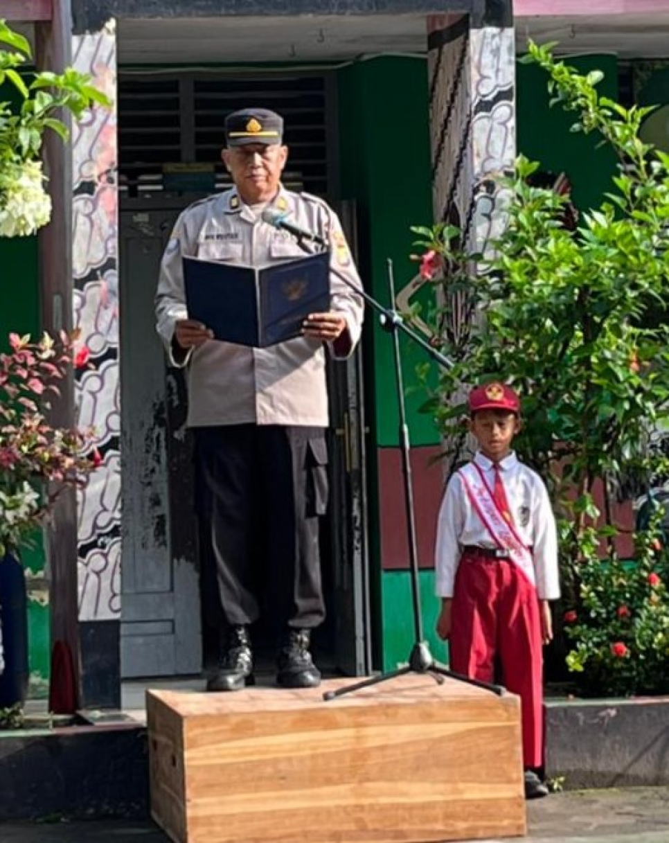 Kanit Binmas Polsek Piyungan, AKP Moh. Widayadi Sanani, menjadi Pembina Upacara Bendera di SDN 2 Cepokojajar, Sitimulyo, Piyungan, Bantul, Senin (2/2/2026) pagi.Upacara bendera tersebut diikuti oleh Kepala Sekolah Sutris Pirwantoro S.Pd, guru dan karyawan, serta seluruh siswa-siswi SDN 2 Cepokojajar.