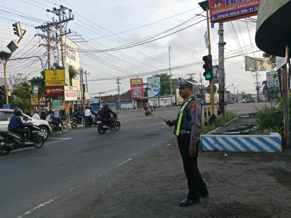 Hadirnya personel Polsek Sewon di lapangan diharapkan dapat membantu masyarakat yang melintas, serta meningkatkan kesadaran tertib berlalu lintas di kalangan pengendara. (Humas Polsek Sewon)