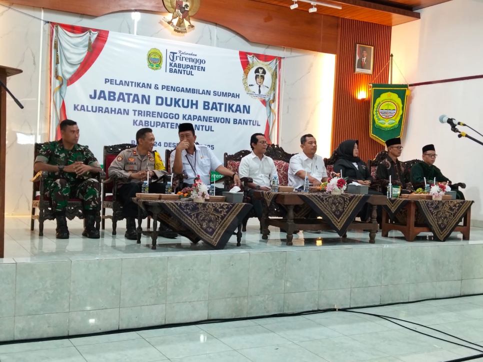 Kapolsek Bantul Kompol Budi Riyanto, S.Sos., didampingi Bhabinkamtibmas Kalurahan Trirenggo Aiptu Amat Riyadi, S.H., menghadiri kegiatan pelantikan dan pengambilan sumpah jabatan Dukuh Batikan yang digelar di Aula Kalurahan Trirenggo, Kapanewon Bantul, Kabupaten Bantul, Rabu (24/12/2025) pagi.Kegiatan yang dimulai pukul 09.00 WIB hingga selesai tersebut dihadiri oleh perwakilan DPMKal Kabupaten Bantul, Panewu Bantul, Wadanramil, Kapolsek Bantul, perwakilan Puskesmas Bantul I, Kepala Jawatan Projo, Lurah dan Carik Kalurahan Trirenggo, Ketua PKK Kalurahan, Ketua dan anggota Bamuskal, pamong kalurahan, Babinsa, Bhabinkamtibmas, Ketua LPMKal, keluarga Dukuh Batikan terlantik, serta perwakilan warga Padukuhan Batikan.