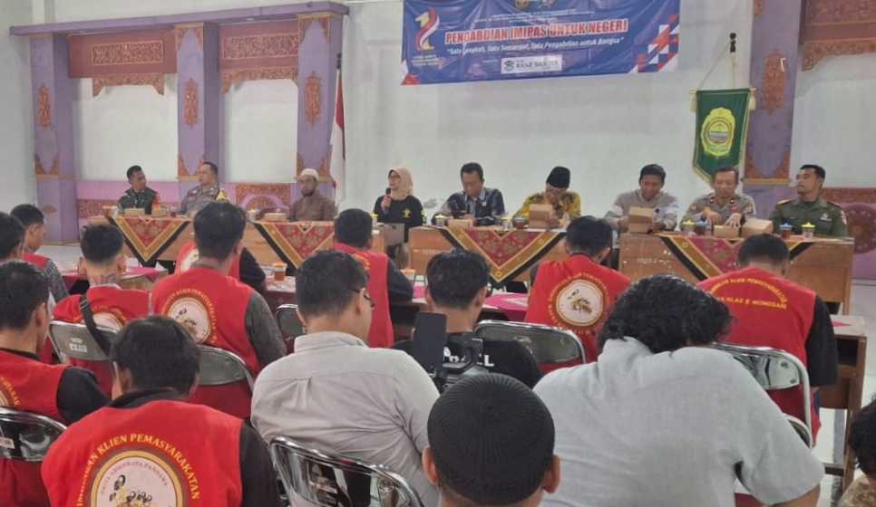 Kapolsek Bantul, Kompol Budi Riyanto S.Sos, beserta Bhabinkamtibmas Kalurahan Bantul, Aiptu Agus Bandianto, menghadiri kegiatan Pengabdian Imipas Untuk Negeri yang berlangsung di Gedung Riptaloka, Bantul, Kamis (27/11/2025).Kegiatan yang mengusung tema "Satu Langkah, Satu Semangat, Satu Pengabdian Untuk Bangsa" ini bertujuan untuk meningkatkan kesadaran dan semangat pengabdian bagi warga binaan maupun masyarakat luas.