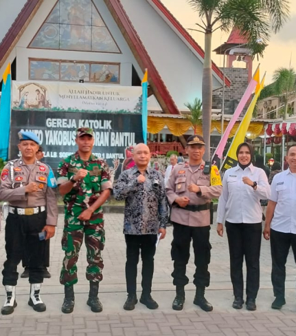 Personel Polsek Bantul yang dipimpin langsung oleh Kapolsek Bantul Kompol Budi Riyanto, S.Sos. melaksanakan pengamanan kegiatan Malam Puji-Pujian di Gereja Kristen Jawa (GKJ) Bopkri Trirenggo, Bantul, Rabu (24/12/2025) malam.Kegiatan pengamanan ini dilakukan untuk memberikan rasa aman dan nyaman kepada jemaat dalam melaksanakan ibadah, sekaligus mengantisipasi potensi gangguan kamtibmas di sekitar lokasi gereja. Personel Polsek Bantul disiagakan di dalam dan sekitar area gereja serta melakukan pengaturan arus lalu lintas di lingkungan sekitar.