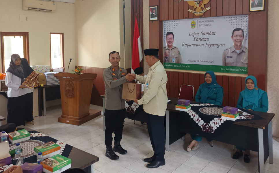 Kapolsek Piyungan, AKP Wido Dwiono SH, menghadiri acara Lepas Sambut Panewu Piyungan yang diselenggarakan pada hari Rabu (11/2/2026), di Aula Kapanewon Piyungan, Bantul.Turut hadir di antaranya Kadis Pariwisata Bantul Saryadi S.I.P M.Si, Panewu Piyungan lama Muhammad Baried S.Sos M.M, Panewu Piyungan baru Drs. Yuli Hernadi S.Sos, Danramil Piyungan Kapten Inf Suminto, Kepala KUA, Kepala Puskesmas, Korwil Pendidikan, Lurah, Pamong, Ketua TP PKK, Ketua Bamuskal, perwakilan perbankan, PC NU, PC Muhammadiyah, serta tamu undangan lainnya.