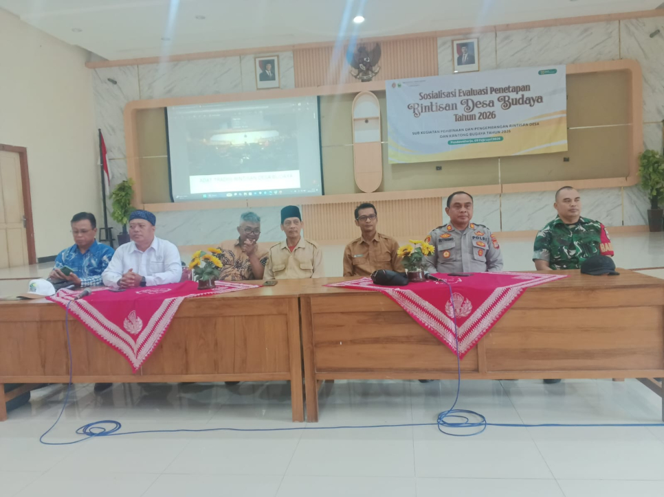 Sosialisasi ini membahas evaluasi terhadap penetapan rintisan desa budaya, termasuk kriteria penilaian, kesiapan administrasi, serta peran aktif seluruh elemen masyarakat dalam menjaga dan melestarikan nilai-nilai budaya lokal.