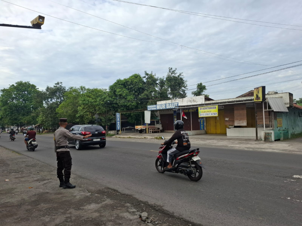 Layanan Prima Polsek Sewon: Bhabinkamtibmas Pendowoharjo Atur Lalin di Simpang SDN Monggang